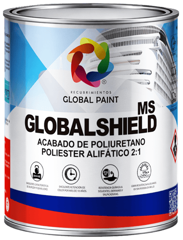 GLOBALSHIED MS es un acabado o capa final, es decir requiere de un primario epóxico, se ocupa en pisos industriales, albercas, cisternas, tanques de almacenamiento e industriales, equipos que transportan concreto, autobuses, carrocerías, auto tanques que transportan fluidos corrosivos, imprimación para aviones, equipo de proceso: válvulas, tuberías, estructuras de acero, por su gran resistencia química, abrasión e intemperie, durabilidad de más de diez años en servicio.